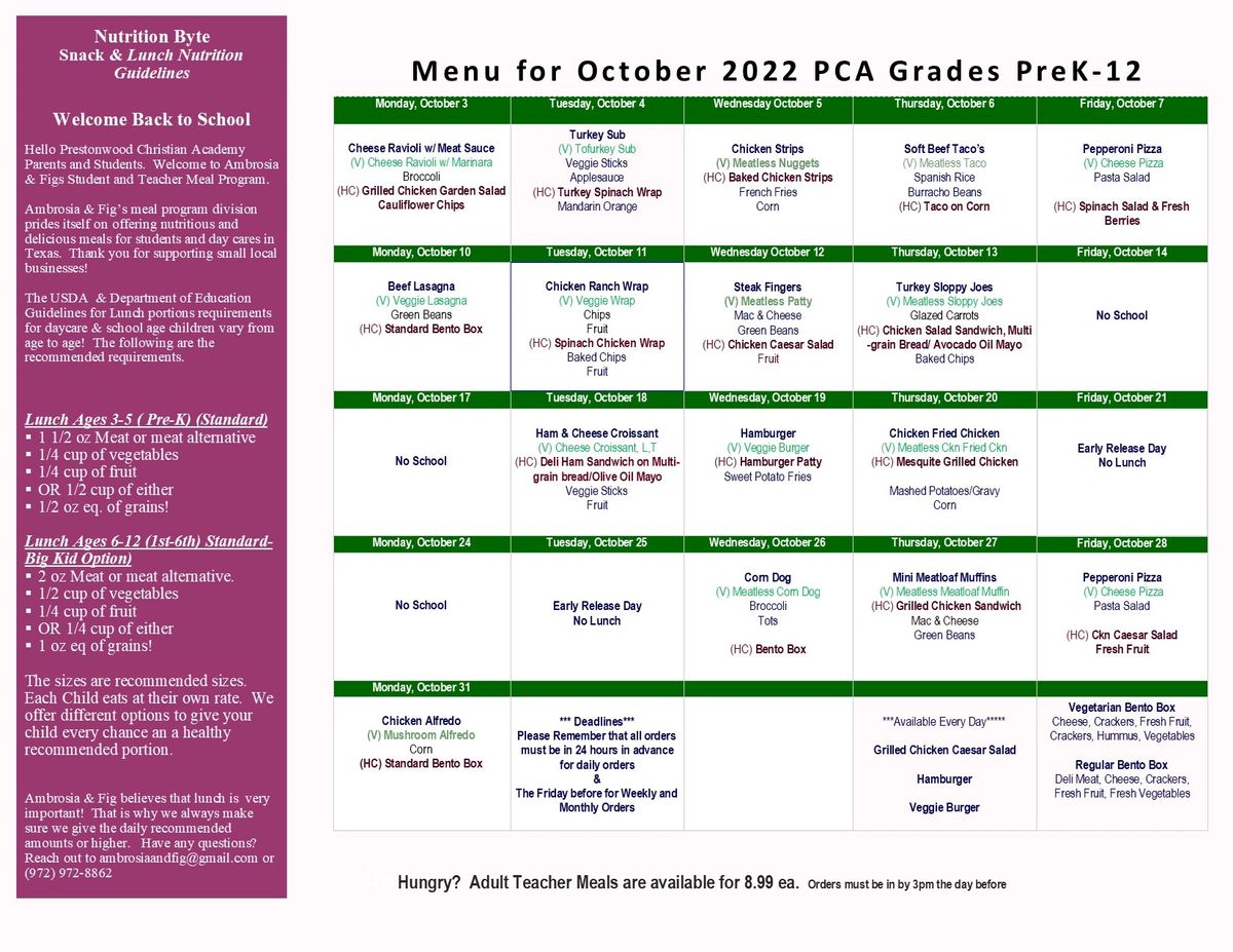 Our End Of October Lunch Menu Desert Garden Montessori Facebook
